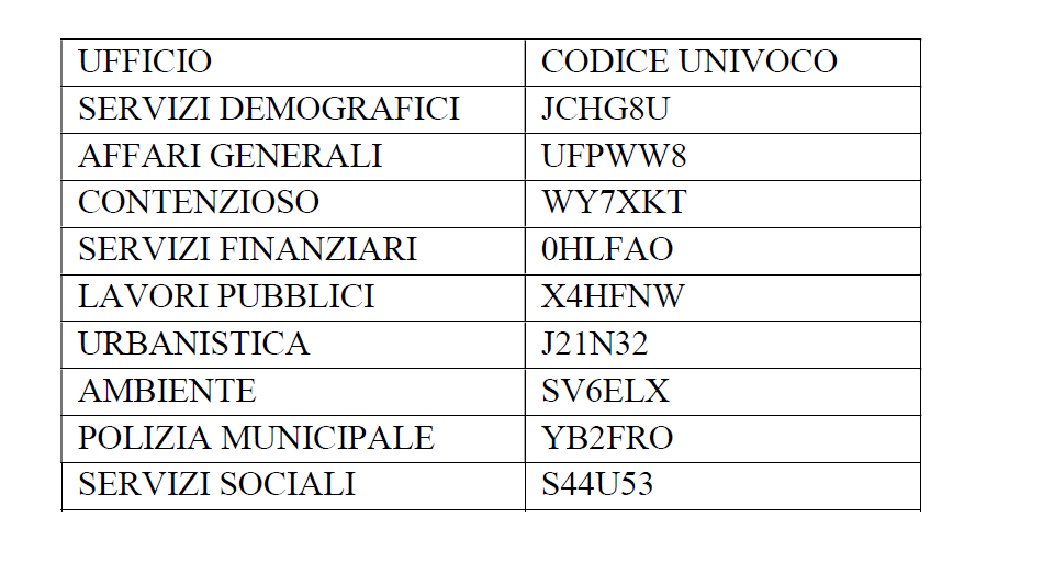 CODICI IDENTIFICATIVI DEGLI UFFICI DESTINATARI DELLE FATTURE ELETTRONICHE