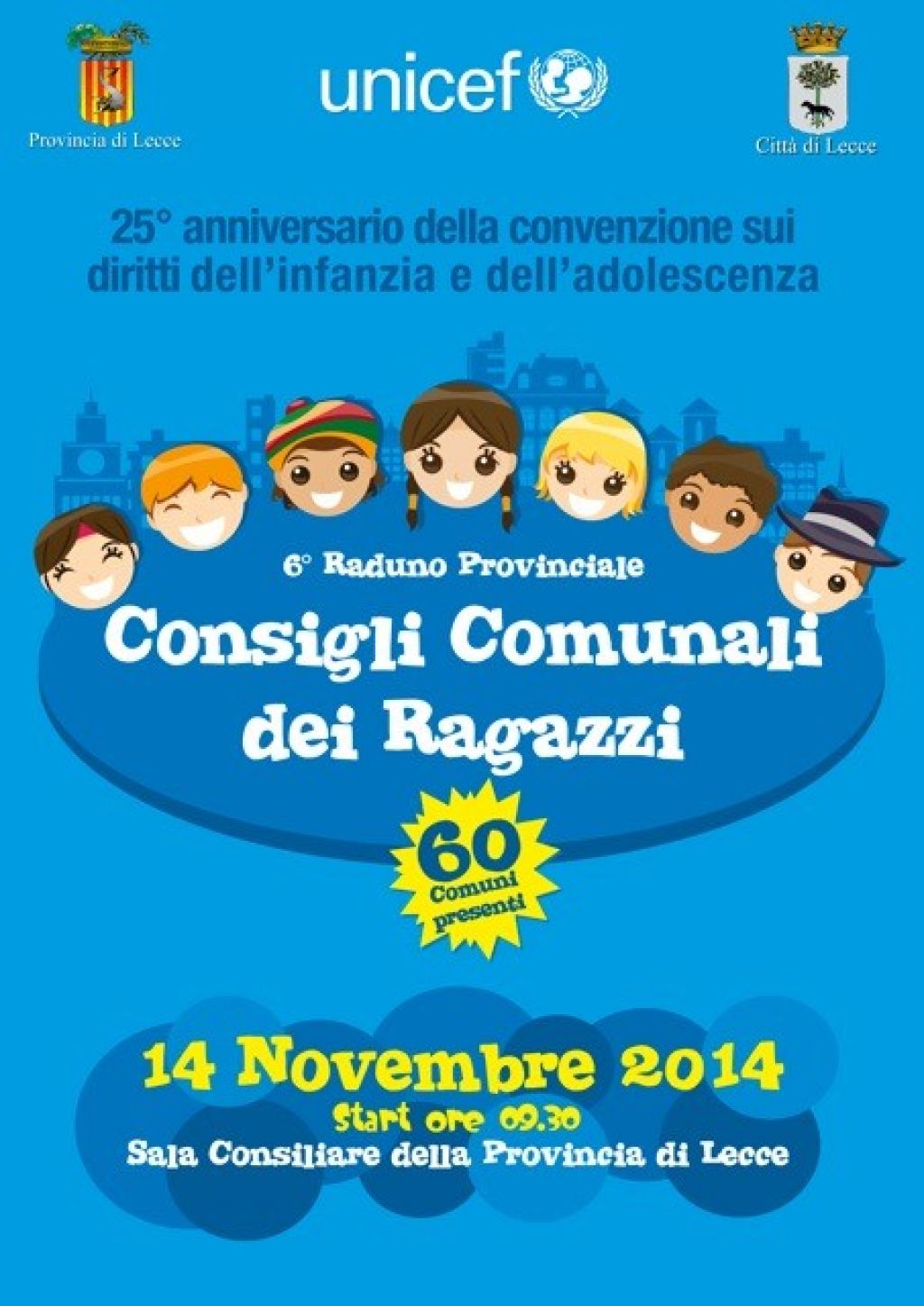 Il 14 Novembre 2014 ore 9.30 presso la Sala Consiliare della provincia di Lecce avrà luogo il 6° RADUNO PROVINCIALE CONSIGLI COMUNALI DEI RAGAZZI. All'evento parteciperanno 60 Comuni in occasione...