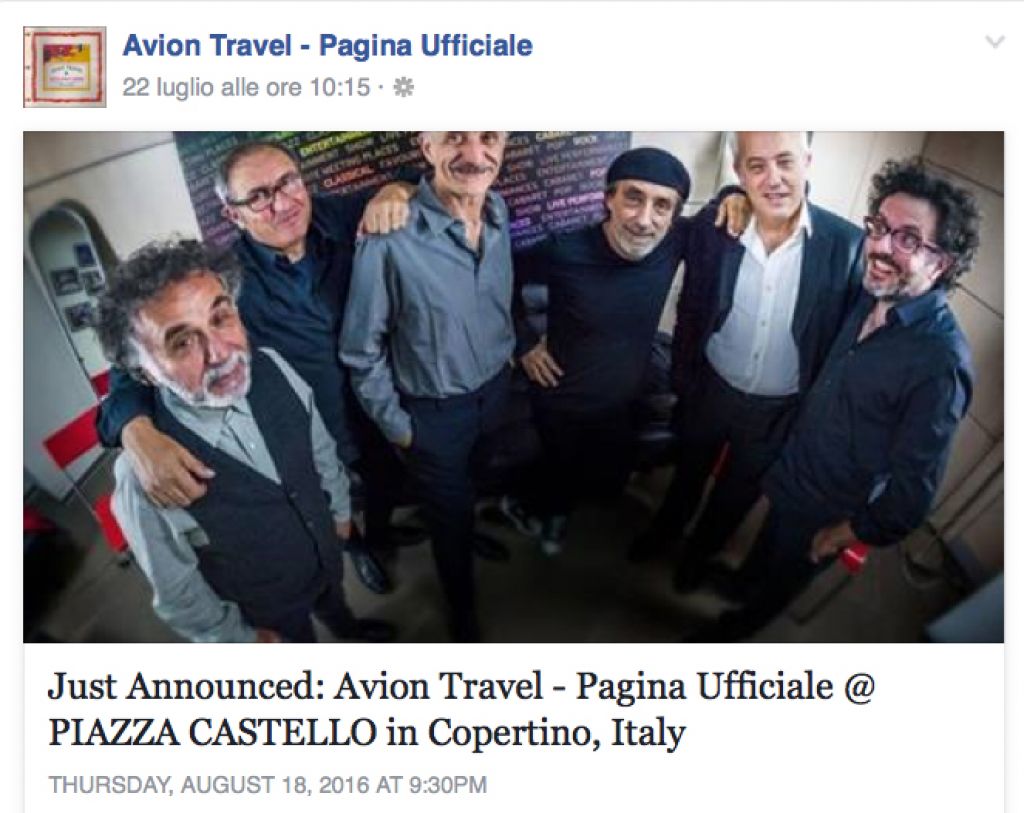 AVION TRAVEL IN CONCERTO A COPERTINO