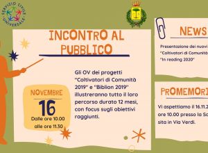 COMUNICATO STAMPA - Incontro di presentazione del nuovo progetto - Coltivatori di Comunità 2020 del Comune di Copertino e incontro conclusivo Progetti 2019.