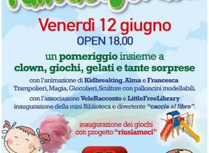 Venerdì 12 giugno Ore 18.00, inaugurazione dei gioghi nuovi al parco Grottella e inaugurazione della mini biblioteca. Per la gioia dei bambini un pomeriggio insieme a clown, giochi, gelati e...