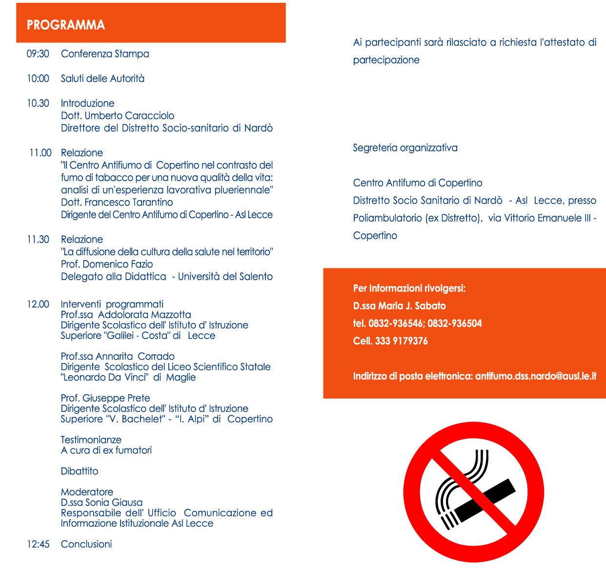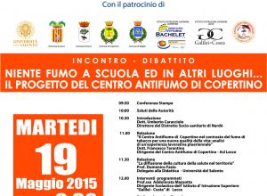 L'ASL con il Centro Antifumo di Copertino, Martedì 19 Maggio 2015, alle ore 9.30, ha organizzato un incontro - dibattito con il patrocino del Comune di Copertino sul tema "NIENTE FUMO A SCUOLA ED...