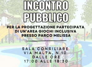 INCONTRO PUBBLICO PER LA PROGETTAZIONE PARTECIPATA DI UN'AREA GIOCHI INCLUSIVA PRESSO PARCO MELISSA.