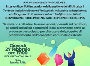 Si invitano i cittadini, le associazioni operanti nel territorio, gli attori sociali ed economici locali a prendere parte del processo partecipato per discutere del progetto di potenziamento dell'ecocentro comunale esistente.