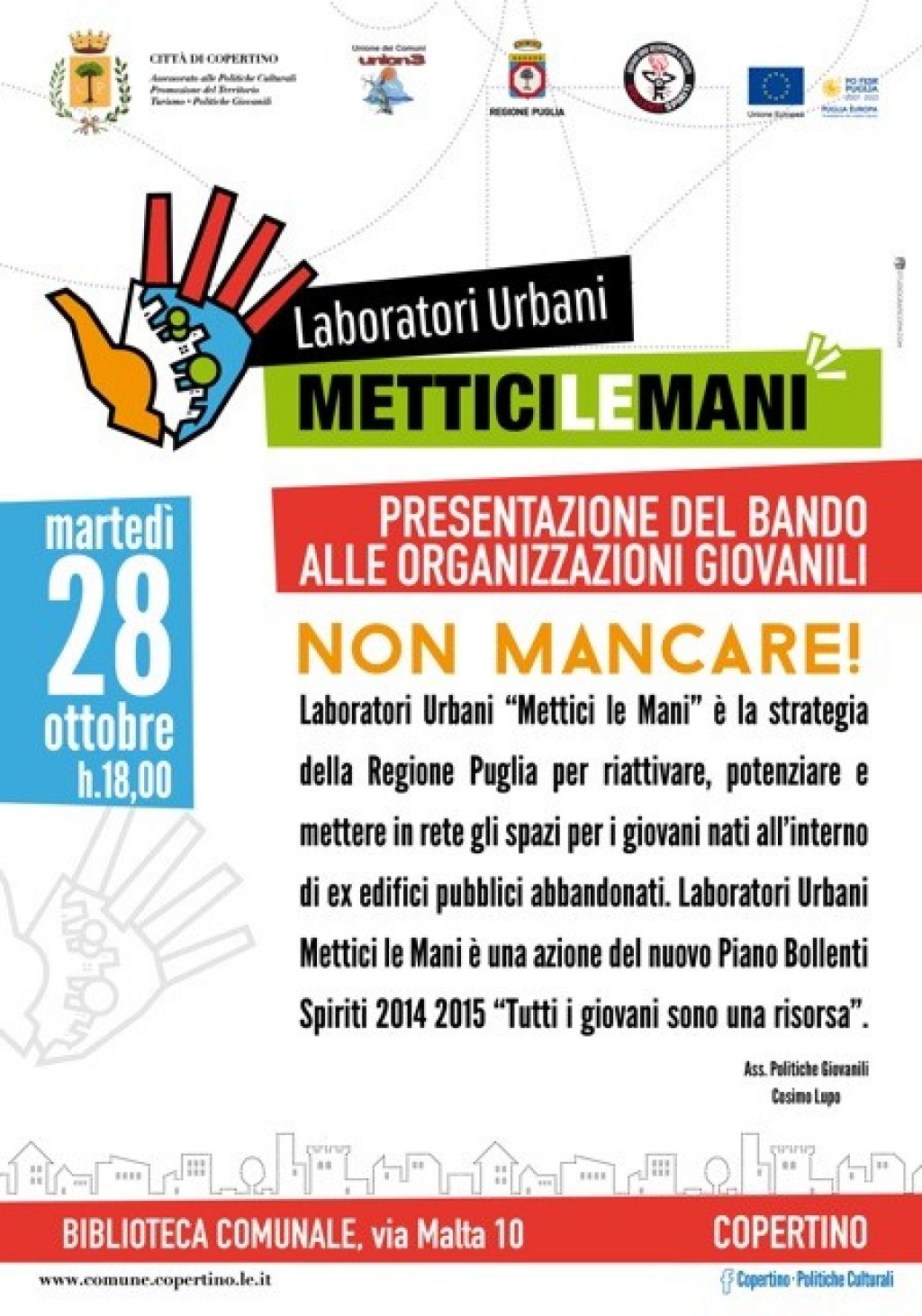 LABORATORI URBANI "METTICI LE MANI" PRESENTAZIONE BANDO ALLE ORGANIZZAZIONI GIOVANILI