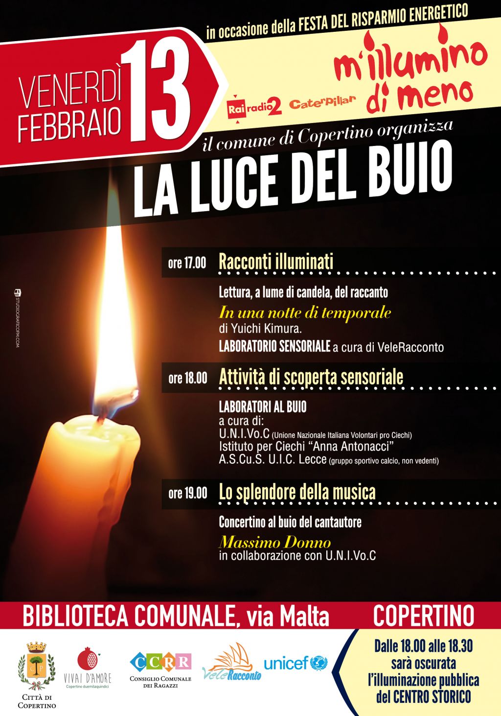 Venerdì 13 Febbraio 2015, in occasione della campagna radiofonica di sensibilizzazione sul risparmio energetico,"M'ILLUMINO DI MENO", ideata da Caterpillar, programma di Radio 2 RAI , il...