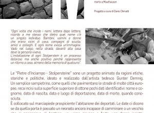 è collocato sul marciapiede prospiciente l’abitazione dei deportati. Le date ci dicono se da quella porta è passato un neonato ancora incapace di camminare o un vecchio che si appoggiava al bastone, un uomo giovane e forte, una donna incinta.
