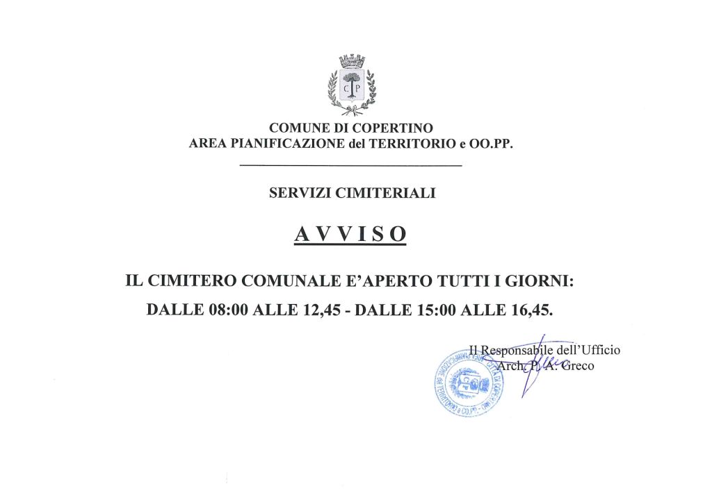 ORARIO CIMITERO COMUNALE INVERNALE