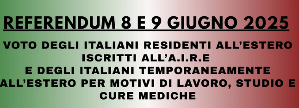 REFERENDUM ABROGATIVI DELL’8 E 9 GIUGNO 2025 – VOTO PER CORRISPONDENZA DEI CITTADINI ITALIANI RESIDENTI ALL’ESTERO ED ISCRITTI ALL’AIRE ED OPZIONE VOTO IN ITALIA.