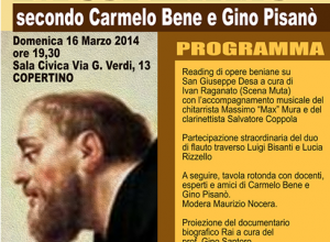 San Giuseppe da Copertino secondo Carmelo Bene e Gino Pisanò – Domenica 16 Marzo 2014, ore 19.30 – Sala Civica, Via G. Verdi, 13 – Copertino. (Leggere il manifesto allegato alla notizia).